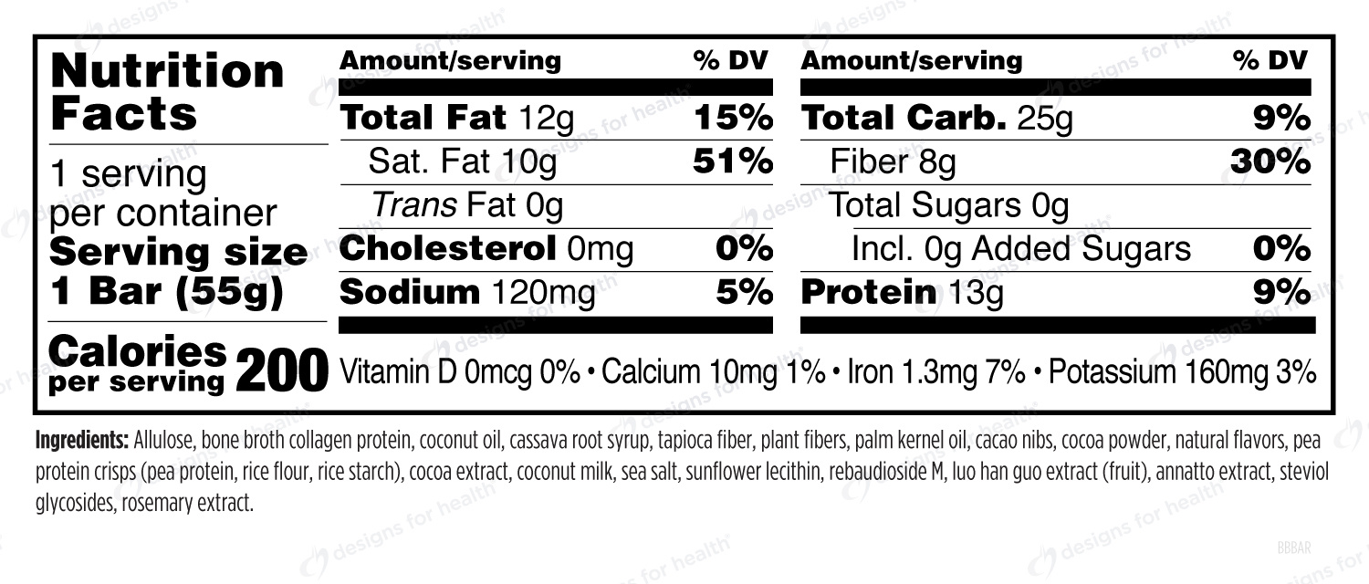 Taurine and grass-fed bone broth protein in a chewy bar. 12 bars per box.