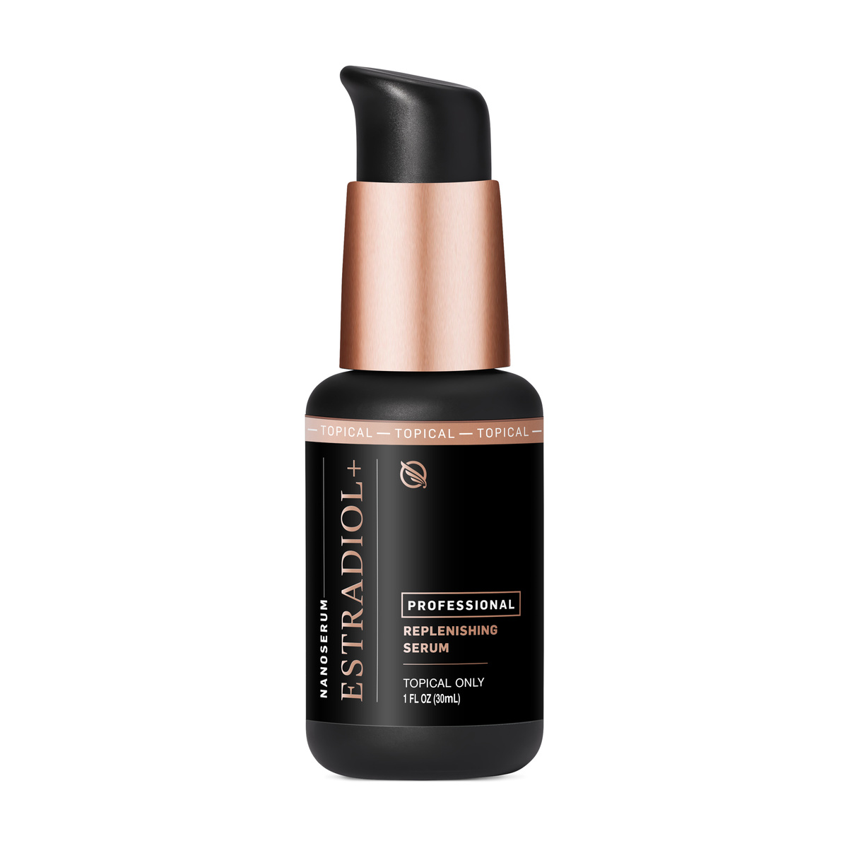 Nanoemulsified topical serum using estradiol derived from phytosterols, natural compounds used to synthesize bioidentical estrogen. 1 fluid ounce.