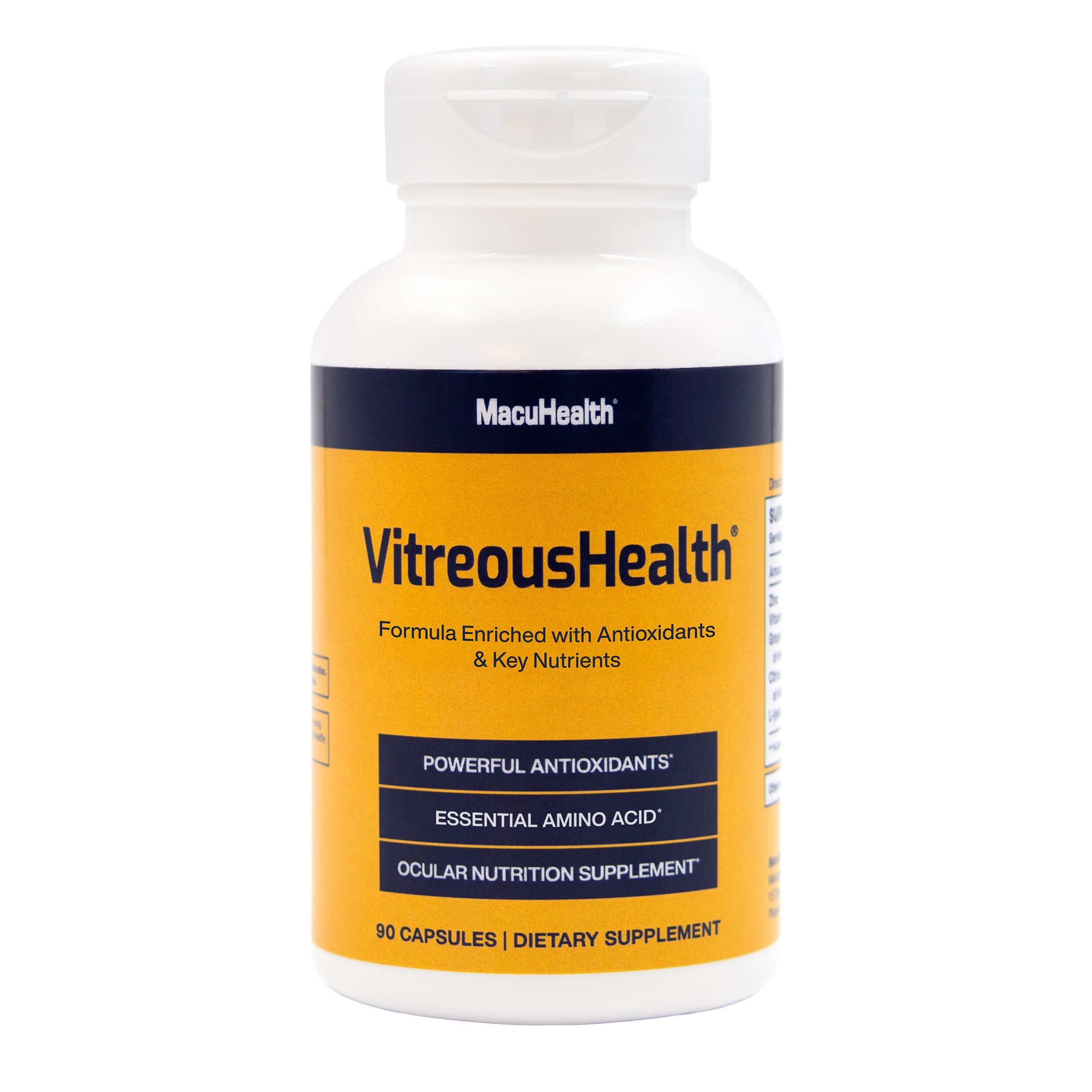 The trusted experts behind MacuHealth have developed VitreousHealth, the first scientifically proven supplement formulated to reduce the severity of floaters. Its patented blend of antioxidants nourishes the eye to protect it against oxidative stress and disease.