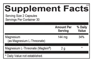 Mag Threonate provides unique, multidimensional support to promote healthy brain function including mental focus, memory, sleep and mood support. 60 capsules.